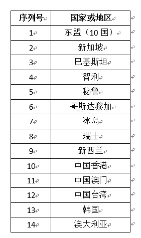 目前,中國已簽署自貿(mào)協(xié)定14個,涉及22個國家和地區(qū)。分別是中國與東盟、新西蘭、新加坡、巴基斯坦、智利、秘魯、哥斯達黎加、冰島、瑞士、韓國和澳大利亞的自貿(mào)協(xié)定,內(nèi)地與香港、澳門的更緊密經(jīng)貿(mào)關系安排(CEPA),以及大陸與臺灣的海峽兩岸經(jīng)濟合作框架協(xié)議(ECFA)。