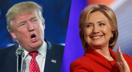美國(guó)總統(tǒng)候選人特朗普(左)與希拉里(右)的拼圖