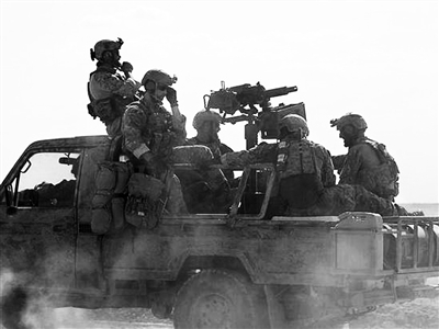 據(jù)信為美國特種部隊(duì)的軍人乘坐皮卡車行進(jìn)在敘利亞北部拉卡省一座村莊內(nèi)。(資料圖片)
