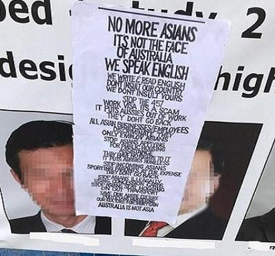 中國投資悉尼地產(chǎn)項(xiàng)目廣告牌被貼種族歧視宣傳單(澳大利亞《每日郵報(bào)》圖片)