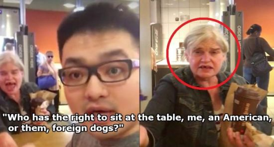 原標(biāo)題:中國(guó)小伙攜女友吃麥當(dāng)勞 遭美國(guó)老太罵“外國(guó)狗”