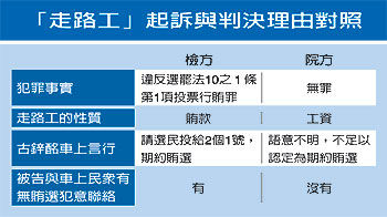 高雄市長(zhǎng)選舉“走路工”案,一審法院判決無(wú)罪,理由之一是認(rèn)為“走路工”是“工資”。法官的判決或有其道理,但卻可能重傷民眾長(zhǎng)期以來(lái)對(duì)于賄選的認(rèn)知。