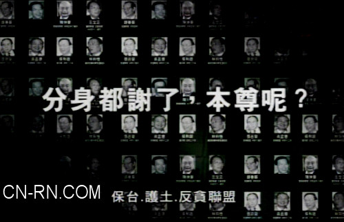 第二則廣告也是主攻謝長廷的清廉問題。廣告的手法與“立委”選舉前的“民進(jìn)黨快樂!臺(tái)灣快樂嗎?”的廣告一樣,把謝長廷在高雄市長及“行政院長”任內(nèi),涉及弊案的親信一一列舉出來,廣告的最后,打出字幕“分身都謝了,本尊呢?”,質(zhì)疑謝長廷的清廉度。