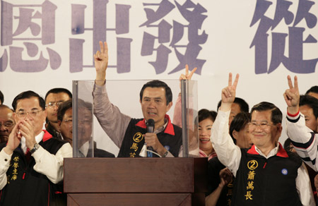 代表國民黨出戰(zhàn)的馬英九這次大勝,重新奪回失去8年之久的臺灣地區(qū)領(lǐng)導(dǎo)人位置。從2000年的失敗到2008年的崛起,國民黨這8年經(jīng)歷了很多,也收獲了很多。