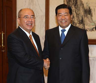 27日下午中共中央全國政協(xié)主席賈慶林會(huì)晤中國國民黨主席吳伯雄(圖片來源:新華社)