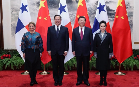 11月17日,國(guó)家主席習(xí)近平在北京人民大會(huì)堂同來(lái)華進(jìn)行國(guó)事訪問(wèn)的巴拿馬總統(tǒng)巴雷拉舉行會(huì)談。(圖片來(lái)源:新華社)