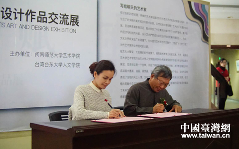 閩南師范大學(xué)藝術(shù)學(xué)院與臺(tái)東大學(xué)人文學(xué)院簽訂交流合作協(xié)議。(閩南師范大學(xué) 張旗航 湯儒韜 攝影)