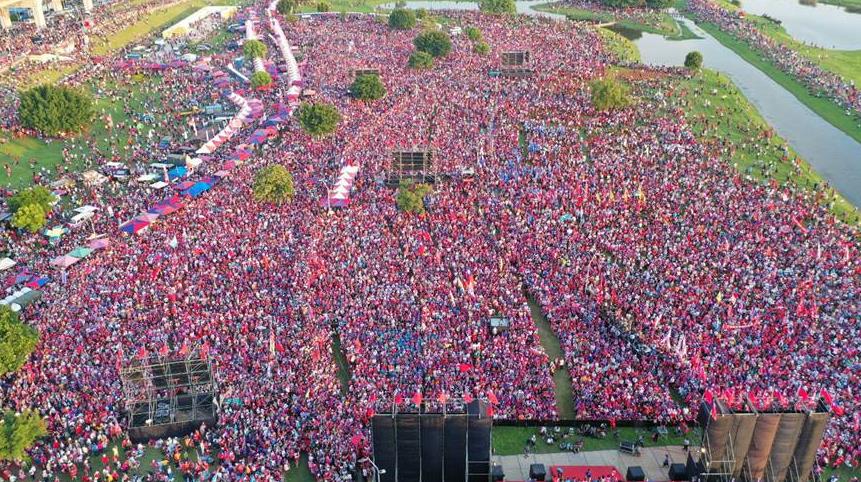 韓國瑜9月8日在新北市三重區(qū)幸福水漾公園舉辦“新北出發(fā),臺灣安全、人民有錢”大型造勢活動,聲勢浩大,聚集人數(shù)超出預(yù)期,主辦方聲稱有40萬人。同時國民黨除吳敦義外,包括馬英九、國民黨副主席兼秘書長曾永權(quán)、前黨主席洪秀柱、前臺北縣長林豐正、周錫瑋、新北市議長蔣根煌、新北市前副市長李四川、韓國瑜“國政”顧問團(tuán)總團(tuán)長張善政等人,以及多位黨籍“立委”參選人及各縣市多位黨籍議長、副議長及議員皆出席力挺,展現(xiàn)國民黨大團(tuán)結(jié)的氣勢。