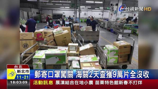 臺媒報道,1月底的兩天內(nèi),臺灣海關(guān)沒收了9萬多片臺灣民眾攜帶或寄送給大陸的口罩。臺財政部門在社交媒體上赫然警告:“口罩管制來真的,休想挑戰(zhàn)公權(quán)力!