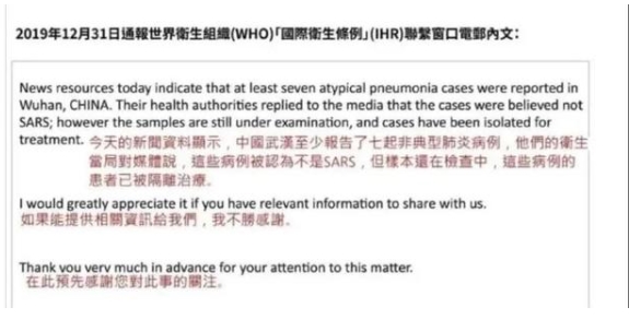 臺(tái)灣給世衛(wèi)的電郵,通篇沒(méi)見(jiàn)所謂提醒。(圖片來(lái)源網(wǎng)絡(luò))
