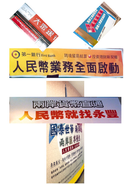 配文圖為臺(tái)北各銀行都在街頭掛出人民幣業(yè)務(wù)廣告。李煒娜攝