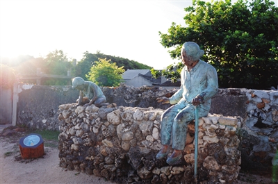 穿過媽宮古城城門,徑直而上,在一所學校對面的巷子口,掛著窄窄的兩條去往潘安邦舊居、張雨生紀念館的指示牌,順著路牌進去,左右是日據(jù)風格的廢棄房子,最初是日據(jù)時期炮兵大隊的宿舍,1946年后規(guī)劃為全臺灣第一個眷村住宅區(qū),現(xiàn)在已經整修為眷村文化園區(qū)。游客在廢棄的房屋間穿梭,了解張雨生、潘安邦的掌故,在外婆的澎湖灣造景前留影,草蔓遮住了遠眺的視野,只有海浪拍打海岸的聲音,那邊便是澎湖灣了。