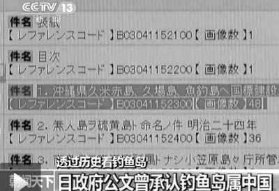 日本國立公文書館(國家級(jí)檔案館)存放的多份日本政府的歷史文件,證明其早在1885年已認(rèn)識(shí)到釣魚島屬中國。央視截圖