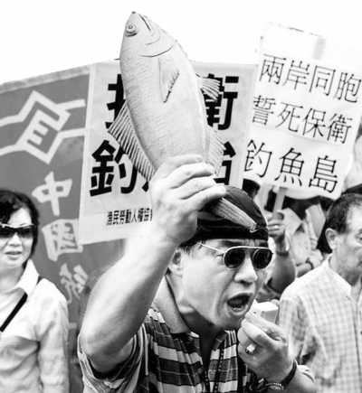 臺灣漁民舉行反日示威,號召兩岸同胞共同保衛(wèi)釣魚島。王文攝