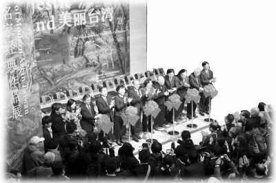 蘇進(jìn)強(qiáng)(右七)出席“美麗臺(tái)灣”畫展開幕式。本報(bào)記者 任成琦攝