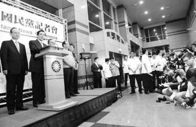 馬英九連任黨主席后舉行記者會。(圖片來源:中新社)
