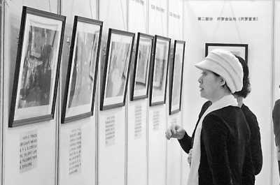 圖為觀眾在北京臺灣會館觀看畫展。王平攝