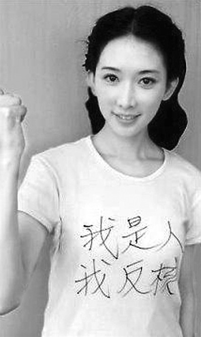 2013年的臺灣反核游行,名模林志玲穿著“我是人我反核”T恤參加。(圖片來源:臺灣媒體)