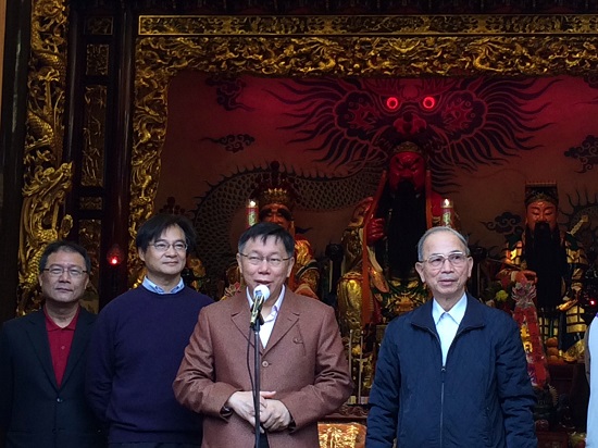當(dāng)紅的臺(tái)北市長(zhǎng)柯文哲最多一天曾連跑9座廟。(圖片來(lái)源:臺(tái)灣“中央社”)
