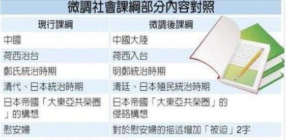 臺(tái)灣最近對(duì)課綱的一次修改是今年7月3日,臺(tái)灣“教育研究院”又正式公布了“12年‘國教’社會(huì)領(lǐng)域課綱草案”。其中高中歷史的中國史部分被大改:廢除中國史,將之并入東亞史,把歷史課綱從現(xiàn)在的臺(tái)灣史、中國史、世界史,改成臺(tái)灣史、東亞史、世界史。