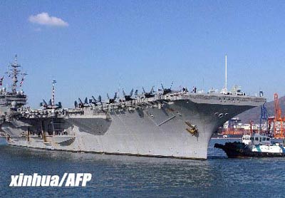 3月14日,美國(guó)海軍“小鷹”號(hào)航空母艦搭載著5000多名美國(guó)海軍官兵以及60架戰(zhàn)機(jī),抵達(dá)韓國(guó)南部港口釜山。 (新華社/法新 圖)