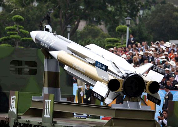 美國(guó)《防務(wù)新聞》網(wǎng)站2007年10月11日?qǐng)?bào)道臺(tái)灣在10月10日的閱兵式上展示了兩種自行研制的導(dǎo)彈,希望以此提醒大陸臺(tái)灣有足夠的力量保衛(wèi)自己。
