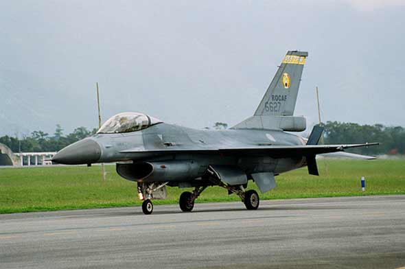 臺(tái)空軍F-16戰(zhàn)斗機(jī)滑跑起飛