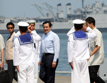 當(dāng)天上午,馬英九在臺(tái)“國(guó)安會(huì)”秘書長(zhǎng)蘇起、“國(guó)防部長(zhǎng)”陳肇敏等人陪同下,搭乘專機(jī)南下左營(yíng)海軍基地,分別前往水星碼頭及柴山山訓(xùn)場(chǎng)視導(dǎo)并慰勉臺(tái)軍官兵。