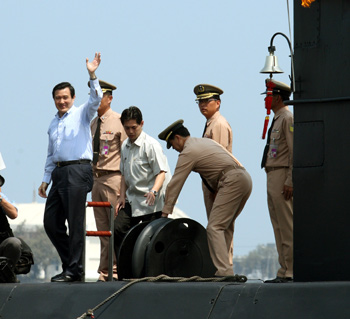 馬英九15日到高雄海軍左營(yíng)基地并登上“海豹”潛艇。