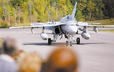 9月18日,在加拿大首都地區(qū)的加蒂諾-渥太華行政機場,觀眾觀看一架加拿大F-18大黃蜂戰(zhàn)斗機降落。當日,加拿大舉行老式飛機飛行表演,以此向第一次和第二次世界大戰(zhàn)中的三位加拿大維多莉亞十字勛章獲得者表達敬意。新華社發(fā)