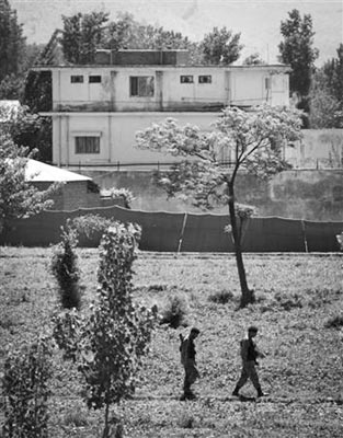 根據(jù)從艾哈邁德的電話中得到的線索,美國情報人員順藤摸瓜,找到了位于巴基斯坦首都伊斯蘭堡北部約120公里的阿伯塔巴德地區(qū)的一個大院。這棟表面平靜的建筑物體積約為周邊其他房屋8倍,配有鐵絲網(wǎng)護欄和高墻等罕見設施,有兩個限制出入的保安閘。它坐落在人口密集的城區(qū),卻沒有使用電話或互聯(lián)網(wǎng)服務。另外,這處住所內(nèi)的垃圾從來都由住戶自行焚燒處理,而不是由社區(qū)清潔人員處理。
