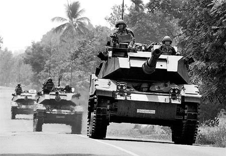 泰國軍隊坦克在泰柬邊境附近巡邏