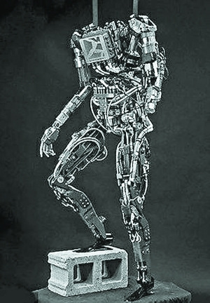 “阿特拉斯”身高1.9米,體重150千克,由頭部、軀干和四肢組成,像人類(lèi)一樣用雙腿直立行走,令人聯(lián)想起科幻電影中的“終結(jié)者”。它的“雙眼”是兩個(gè)立體感應(yīng)器,有兩只靈巧的手,還能在實(shí)時(shí)遙控下穿越比較復(fù)雜的地形。