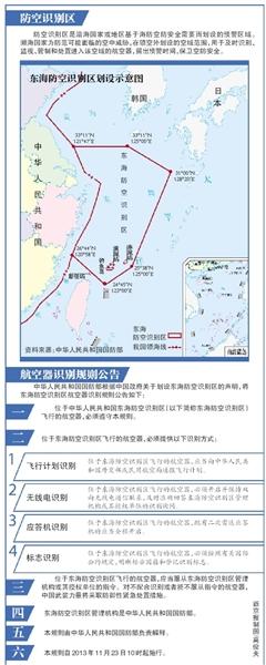 中國(guó)政府23日發(fā)表聲明,宣布劃設(shè)東海防空識(shí)別區(qū),并發(fā)布航空器識(shí)別規(guī)則公告和識(shí)別區(qū)示意圖。