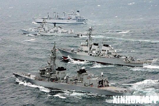 2007年4月16日,日本海上自衛(wèi)隊和美國、印度海軍的軍艦在日本房總半島附近的太平洋海域進(jìn)行聯(lián)合訓(xùn)練。新華社/法新