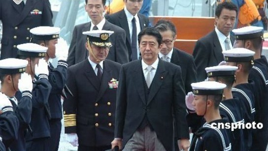 安倍晉三檢閱日本海上自衛(wèi)隊(duì)(資料圖)