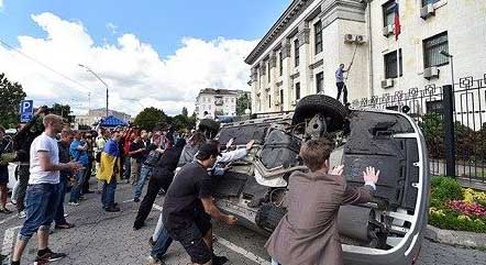 當(dāng)?shù)貢r(shí)間6月14日,示威者襲擊俄羅斯駐烏克蘭使館。