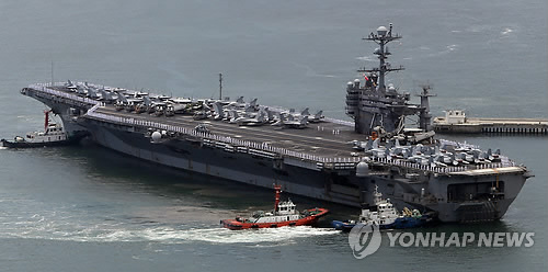 “喬治·華盛頓號”于本月11日下午抵達(dá)韓國釜山港。(韓聯(lián)社)