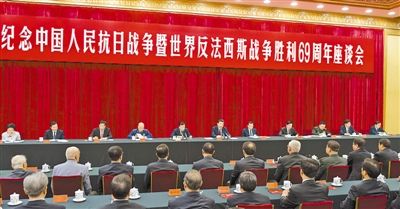 中共中央、國務(wù)院、中央軍委3日下午在人民大會堂舉行座談會,紀念中國人民抗日戰(zhàn)爭暨世界反法西斯戰(zhàn)爭勝利69周年。中共中央總書記、國家主席、中央軍委主席習(xí)近平發(fā)表重要講話強調(diào),歷史無法重來,未來可以開創(chuàng)。站在新的歷史起點上,我們紀念中國人民抗日戰(zhàn)爭暨世界反法西斯戰(zhàn)爭的偉大勝利,就是要銘記歷史、警示未來,動員全黨全軍全國各族人民肩負起歷史重任,動員全黨全軍全國各族人民更加奮發(fā)有為地為實現(xiàn)中華民族偉大復(fù)興而奮斗。