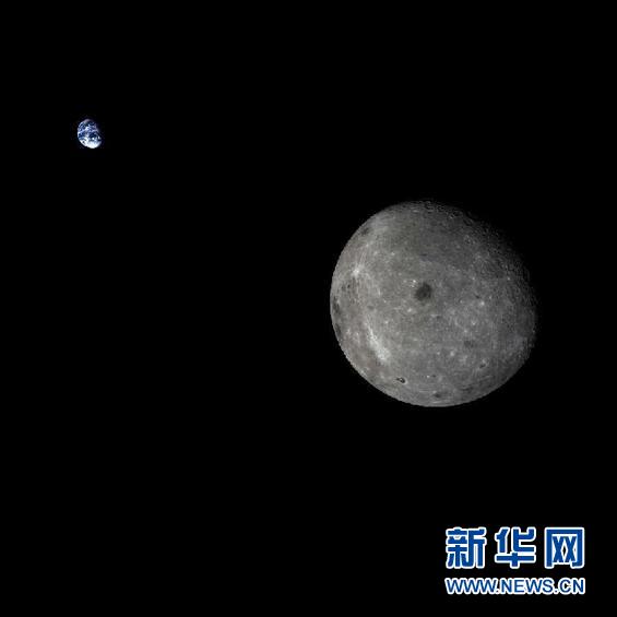 地月合影圖像。記者從國防科工局獲悉,北京時間28日19時40分許,我國探月工程三期再入返回飛行試驗器完成月球近旁轉(zhuǎn)向飛行,離開月球引力影響球,進入月地轉(zhuǎn)移軌道,預計將于11月1日返回地球。新華社發(fā) (國防科工局提供)"