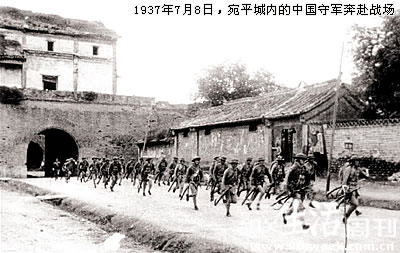 1937年7月7日,日軍在盧溝橋回龍廟附近進行挑釁性的軍事演習,隨后,炮轟宛平城。中國守軍奮起抵抗,全國抗日戰(zhàn)爭從此開始。