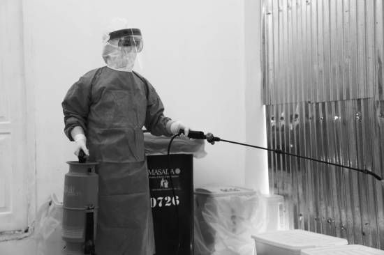 援塞期間,為醫(yī)療隊工作場所消毒是王新華每天都要做的工作。(資料圖片)