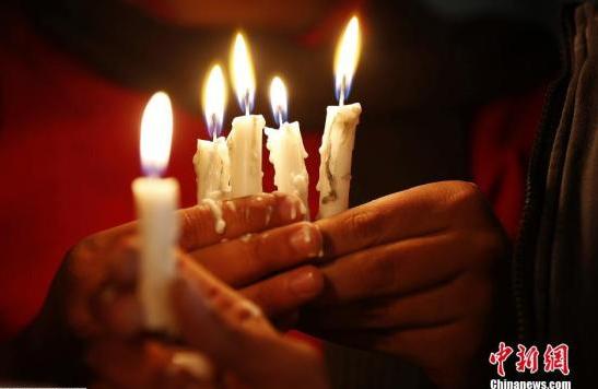 當(dāng)?shù)貢r間2月2日晚,約旦首都安曼,約旦數(shù)百人齊聚日本駐安曼大使館前,點亮蠟燭為遇難人質(zhì)哀悼。日本駐約旦大使館降半旗,對遇難者表示哀悼。