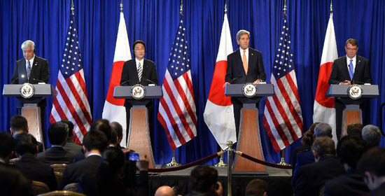 4月27日,美國和日本在紐約聯(lián)合發(fā)表新版《美日防衛(wèi)合作指針》。