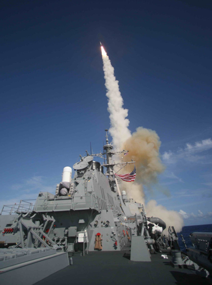 “宙斯盾”彈道導(dǎo)彈防御系統(tǒng)是以美國海軍“宙斯盾”驅(qū)逐艦和巡洋艦上現(xiàn)有的“宙斯盾”武器系統(tǒng)與“標準”防空導(dǎo)彈為基礎(chǔ),經(jīng)過改進而發(fā)展起來的一種海上機動彈道導(dǎo)彈防御系統(tǒng),主要由SPY-1相控陣雷達、指揮控制與通信系統(tǒng)以及“標準-3”攔截彈等部分組成。初期部署的系統(tǒng)(Block I型系統(tǒng))主要用于攔截在中段飛行的近程和中程彈道導(dǎo)彈(包括在中段的上升段和下降段飛行的彈道導(dǎo)彈),美國與日本正在合作研制的系統(tǒng)(Block II型系統(tǒng))將有能力攔截在中段飛行的中遠程彈道導(dǎo)彈,甚至遠程彈道導(dǎo)彈。