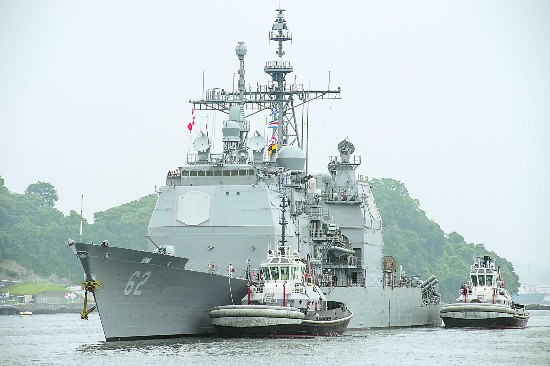 美國“錢塞勒斯維爾”號巡洋艦18日進(jìn)駐日本橫須賀。