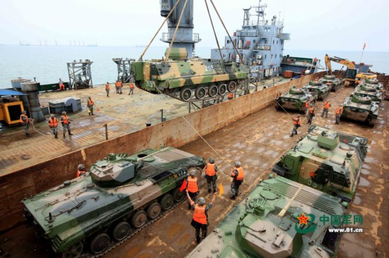 2015年5月,在一次兩棲訓(xùn)練演習(xí)期間,中國曾利用一艘2萬噸級民用客貨滾裝船搭載解放軍空軍航空兵部隊的人員和裝備。這毫不奇怪,因為自2000年以來,中國一直對其航運企業(yè)發(fā)放補貼,對渡輪以及其他滾裝船進行一定程度的改裝,并允許軍方在兩棲訓(xùn)練及戰(zhàn)時利用這些船舶。數(shù)十年來,中國政府始終奉行一套獨特的體系,與軍方可動員的上百成千艘商業(yè)渡輪和駁船保持聯(lián)系,方便在對臺沖突時展開兩棲作戰(zhàn)行動。據(jù)信,在執(zhí)行兩棲運兵時任務(wù),如果加上非專業(yè)船舶(大部分是民船),中國就能夠運輸十多個師的兵力。