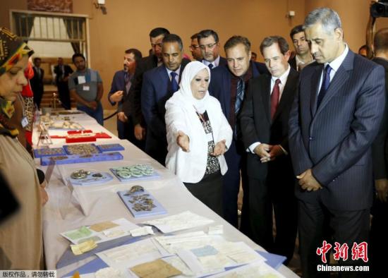 資料圖:當(dāng)?shù)貢r(shí)間2015年7月15日,伊拉克巴格達(dá),伊拉克國(guó)家博物館舉行走私文物歸還儀式,伊拉克旅游部長(zhǎng)Adel Shirshab與美國(guó)駐伊大使Stuart Jones出席。據(jù)悉,美國(guó)在敘利亞對(duì)“伊斯蘭國(guó)”展開(kāi)突襲時(shí)截獲了這批走私文物。