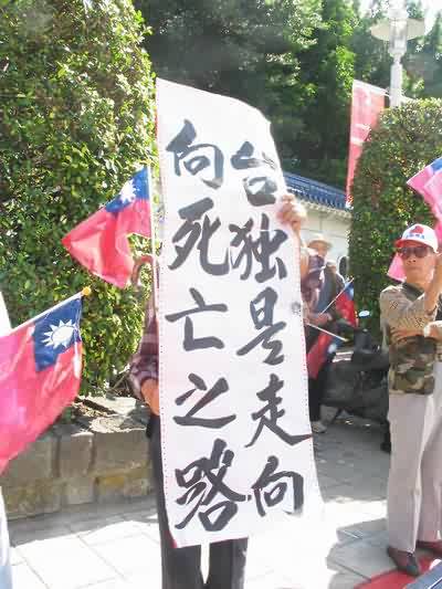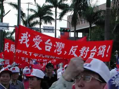 民眾高舉寫有“反獨”字樣的標(biāo)語