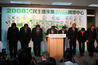 民進(jìn)黨將慘敗歸咎為選制不公,仍未能正視問題根本所在。圖為民進(jìn)黨黨部為敗選道歉。